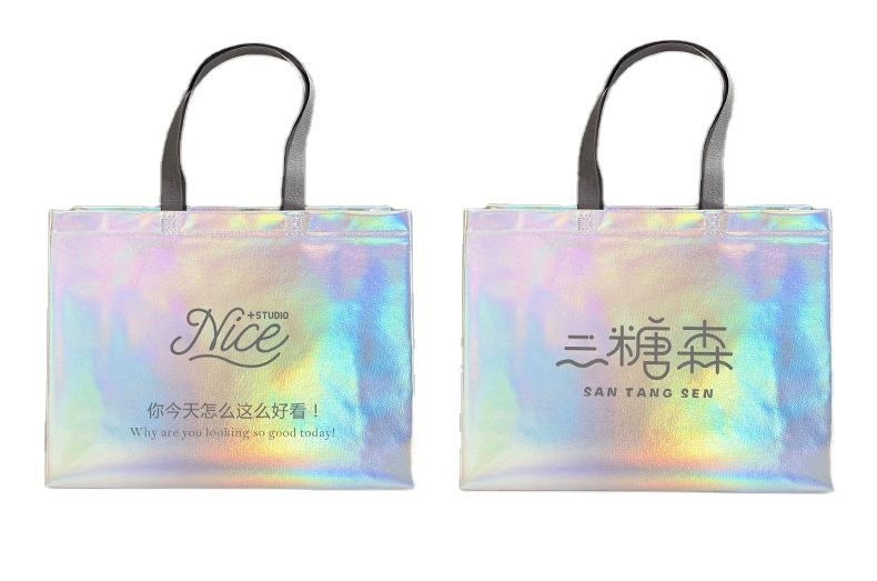 Sac non tissé laminé métallisé argent et or avec logo personnalisé, sac non tissé de haute qualité, sac non tissé pas cher