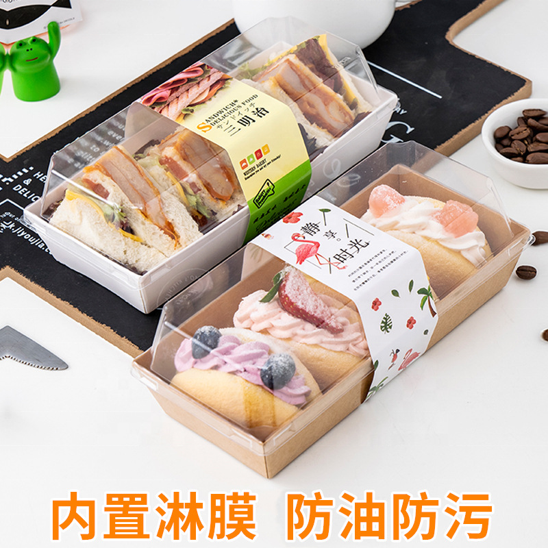 Logo personnalisé Taille Écologique Populaire Sandwich Kraft Cartons Boîte d'Emballage Boîte Jetable Swiss Roll Gâteau Conteneurs