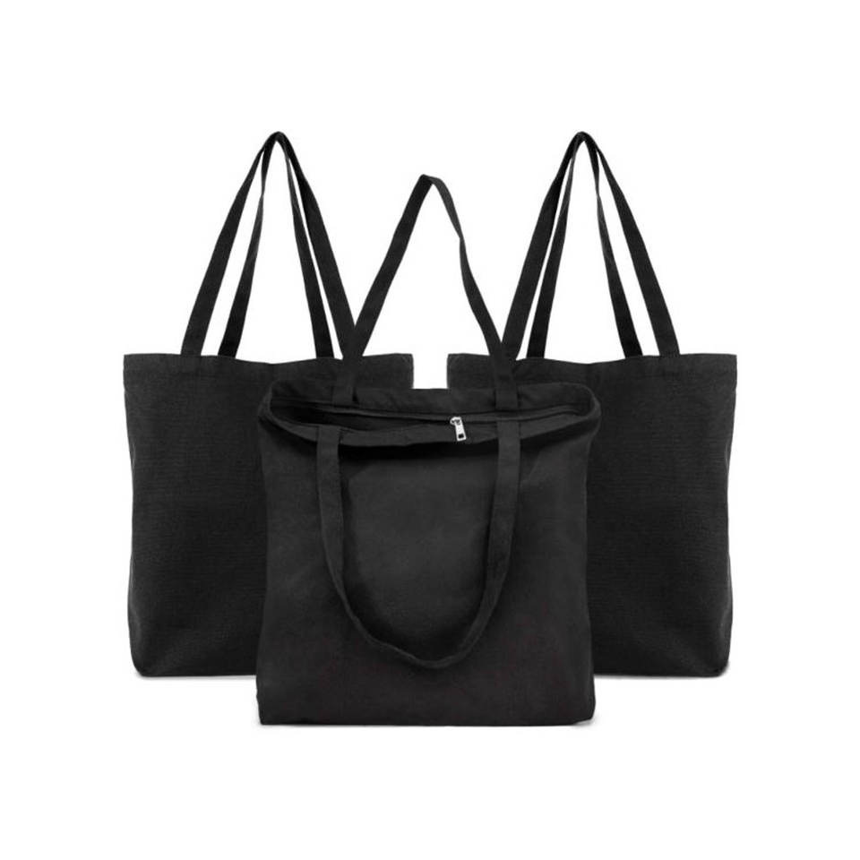Sac fourre-tout uni réutilisable et écologique avec fermeture éclair, Logo imprimé, taille personnalisée