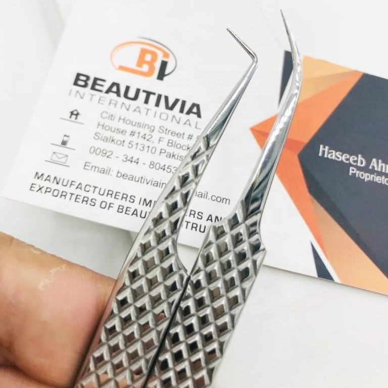 Logo personnalisé botte mince volume russe pince à épiler extension de cils finition satinée terne acier inoxydable durable à 90 degrés