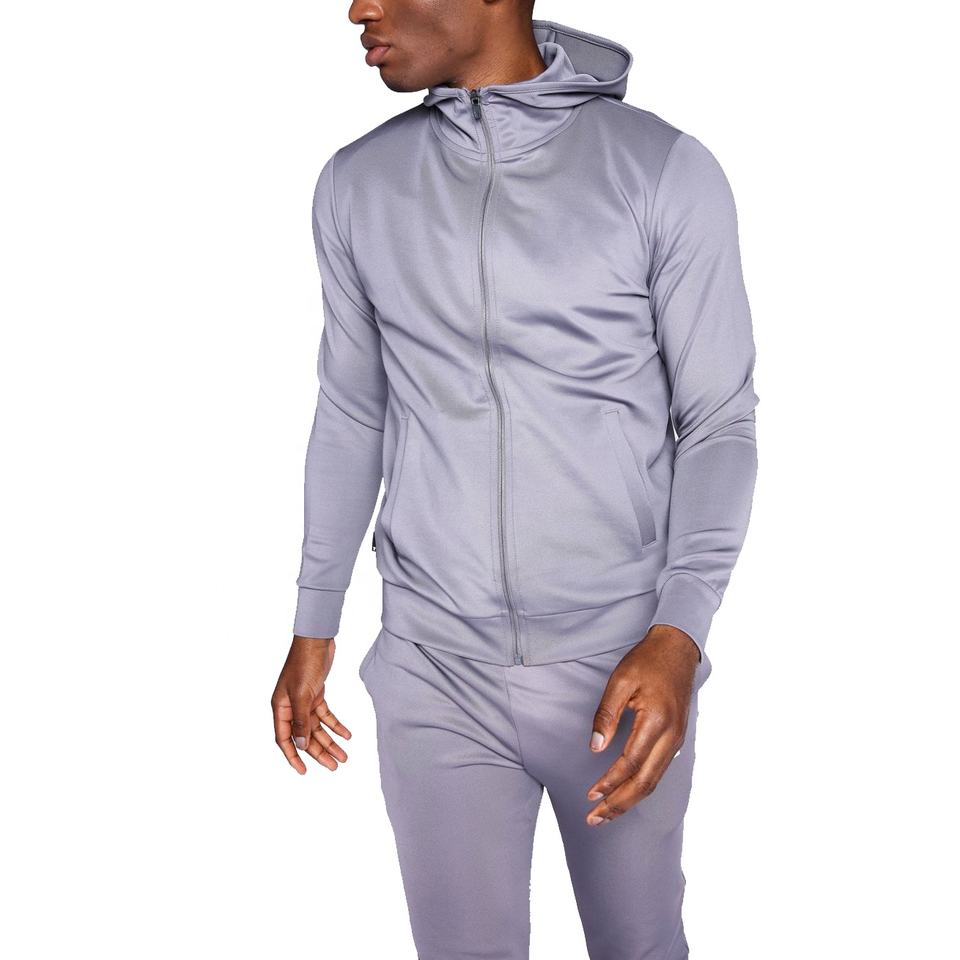 Ensemble de survêtement extensible à fermeture éclair légère et coupe ajustée avec logo personnalisé pour hommes survêtement uni en polyester et élasthanne avec fermeture éclair complète