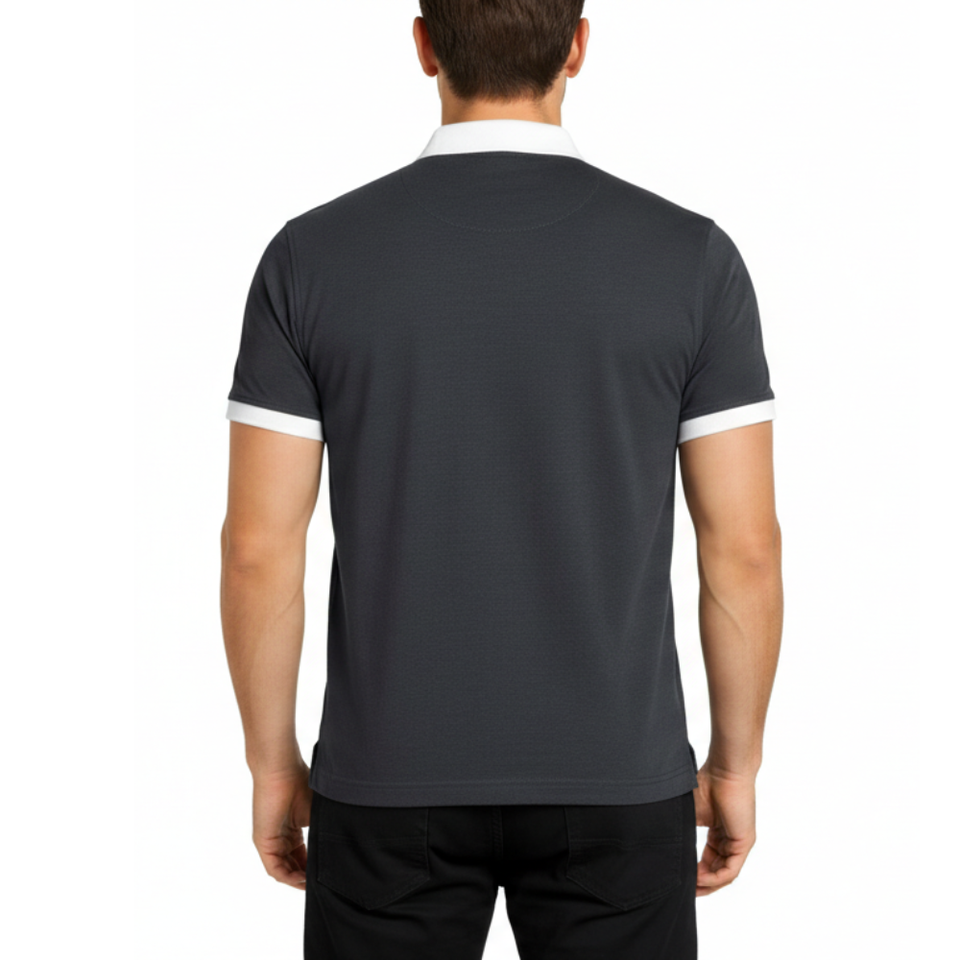 Polo homme slim fit avec logo personnalisé, col contrastant, bordure blanche, manches courtes, décontracté, sport, business, golf.