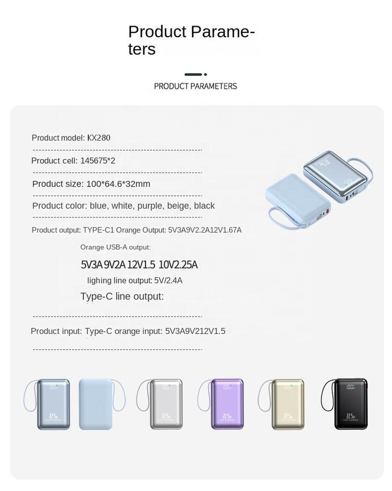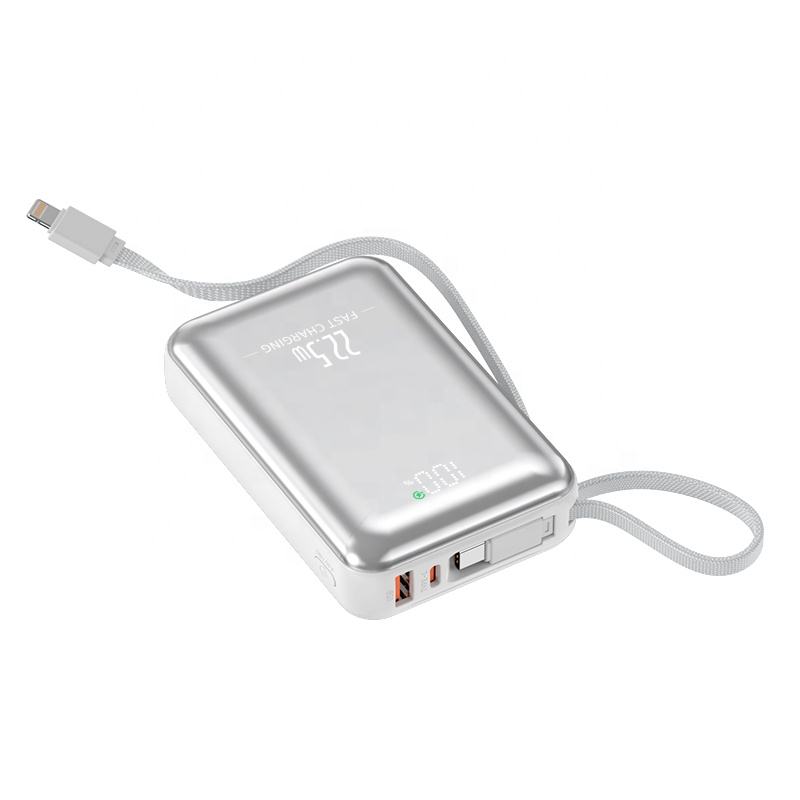 Banque d'alimentation mobile personnalisée avec logo, 20000 mAh, 22,5 W PD, batterie externe, charge rapide, avec câble pour téléphone, légère