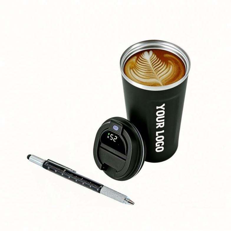 Gobelet isotherme en acier inoxydable avec couvercle, affichage intelligent de la température, logo personnalisé, cadeau promotionnel pour entreprise, voyage, bureau, café