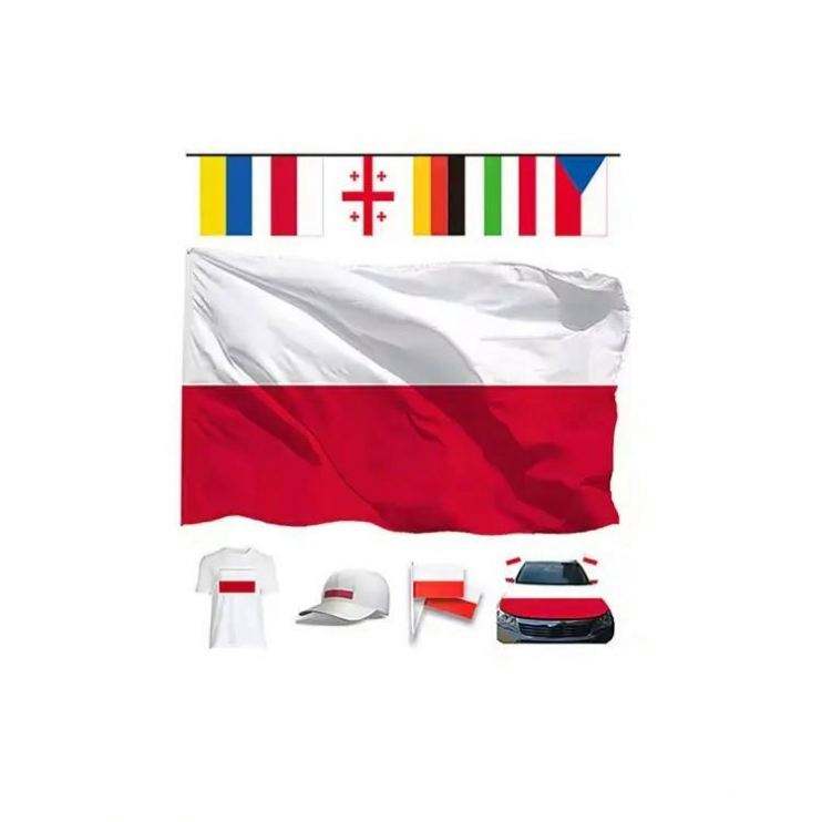Kit de supporters de football personnalisé avec logo, t-shirts assortis, capes, chapeaux, bannières, drapeaux en polyester pour événements de football