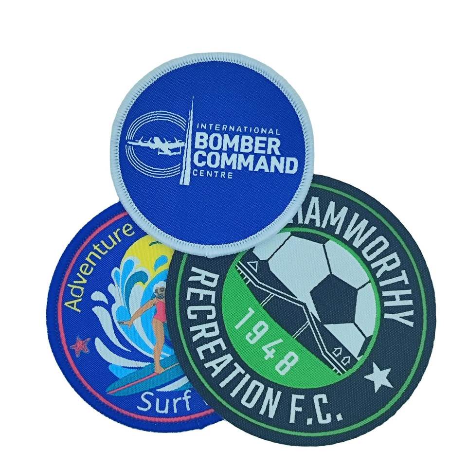 Logo personnalisé Presse à chaud souple Étiquette en relief Joint tissé Logo multicolore Brassard adhésif thermofusible