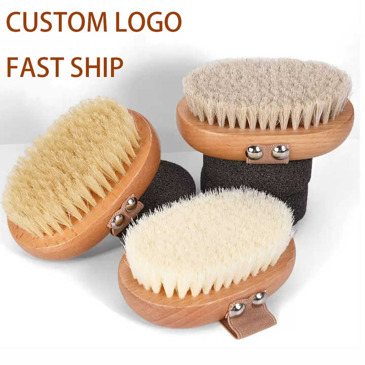 Brosse corporelle sèche en bois avec logo personnalisé, poils doux en nylon, exfoliante pour la douche, nettoyage corporel avec brosse sèche en bois de hêtre