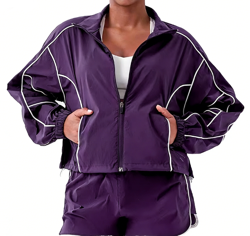 Ensemble de survêtement sport surdimensionné en coton 100% respirant et léger pour l'automne, avec logo personnalisé, boutons solides, veste coupe-vent