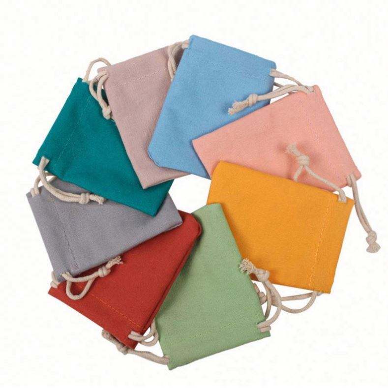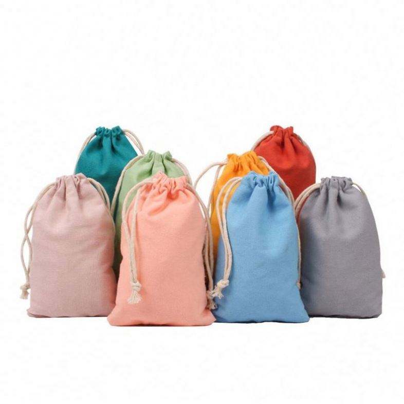 Sac cadeau en coton uni avec cordon de serrage, personnalisable avec logo, couleur unie, petit sac d'emballage en tissu couleur bonbon
