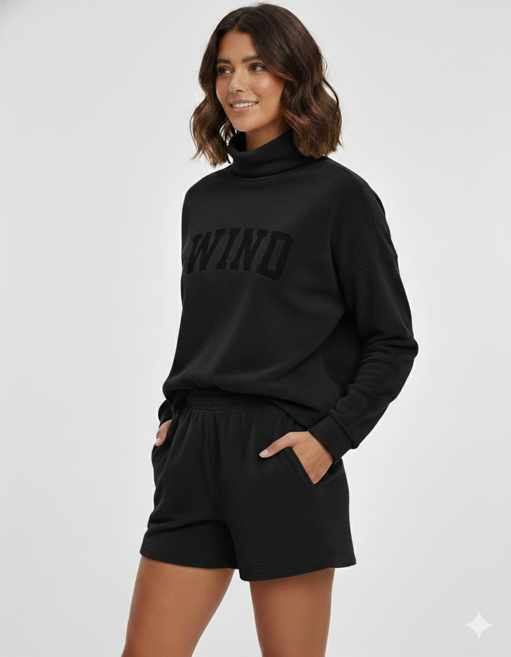 Ensemble 2 pièces pour femme avec logo personnalisé, couleur unie, col montant et short, coupe classique, ensemble décontracté, polyester et coton, respectueux de l'environnement