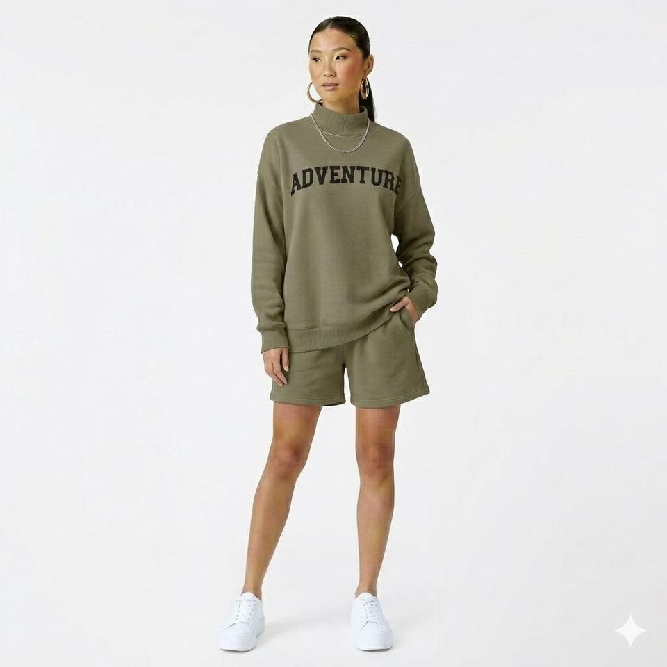 Ensemble 2 pièces streetwear pour femme, col montant, couleur unie, avec logo personnalisé, short et haut, en polyester et coton, écologique