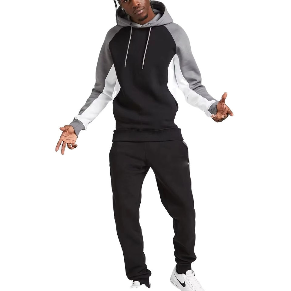 Ensemble de survêtement homme 100% coton, coupe évasée, respirant, couleurs unies, avec logo personnalisé et impression sérigraphique, pantalon de survêtement à effet superposé
