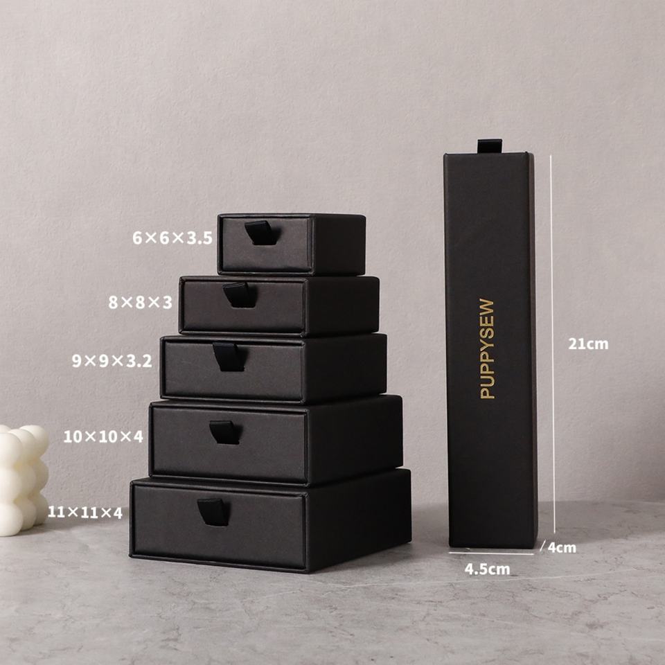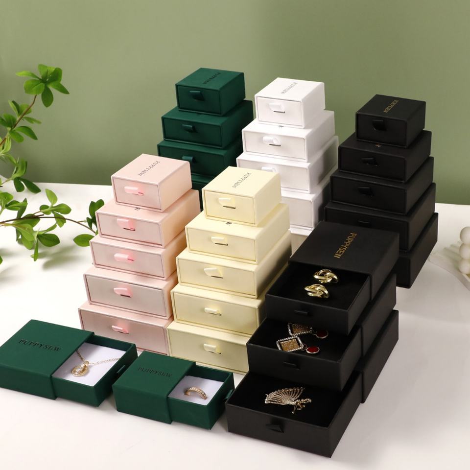 Boîte d'emballage de bijoux de luxe faite à la main avec logo personnalisé et motif uni pour collier, bague, boucles d'oreilles, boîte pour la Saint-Valentin
