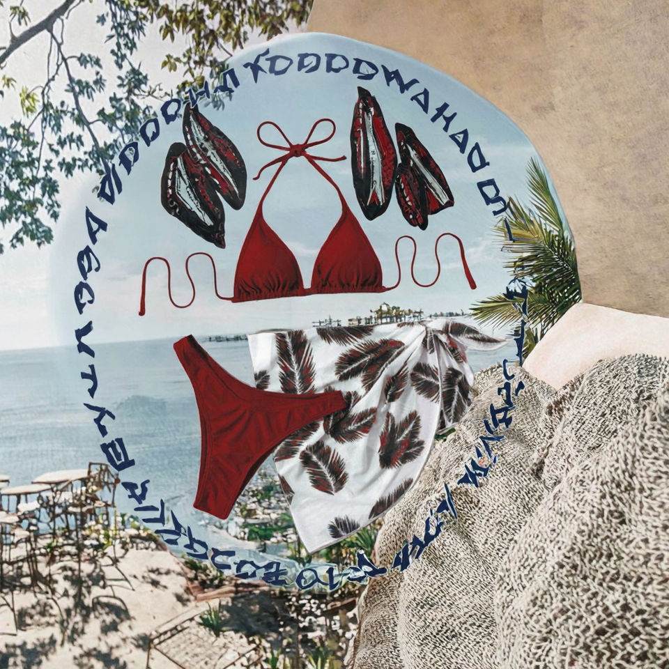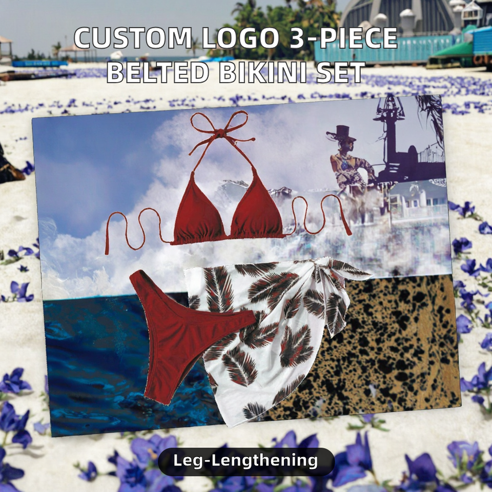 Maillot de bain trois pièces en gaze avec ceinture en spandex/nylon, logo personnalisé, pour femmes