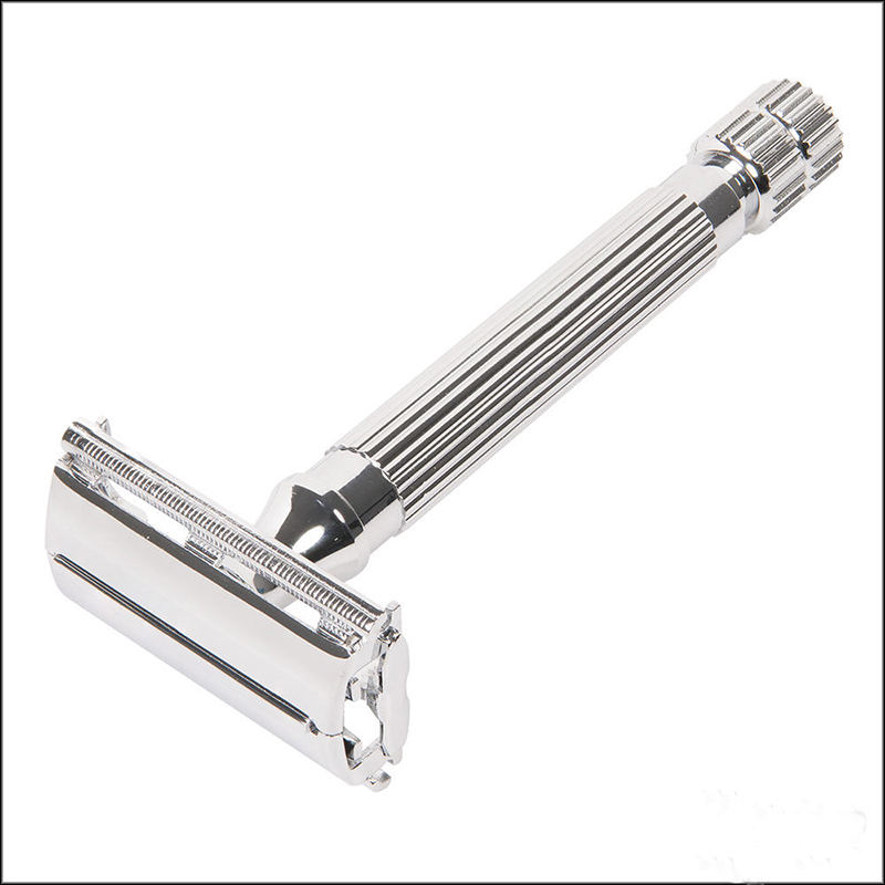 Rasoir de barbier en acier inoxydable massif avec logo personnalisé avec lame exposée