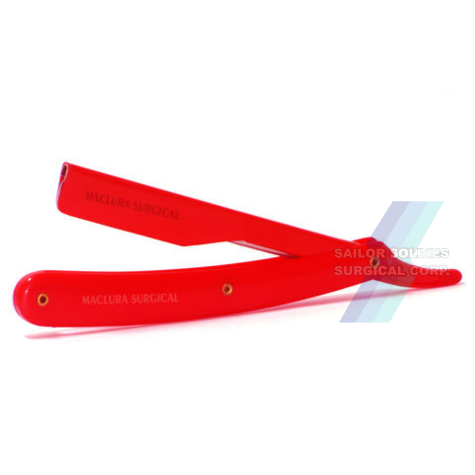 Rasoir à raser droit avec logo personnalisé de haute qualité pour barbiers en acier inoxydable massif avec lame exposée de couleur rouge
