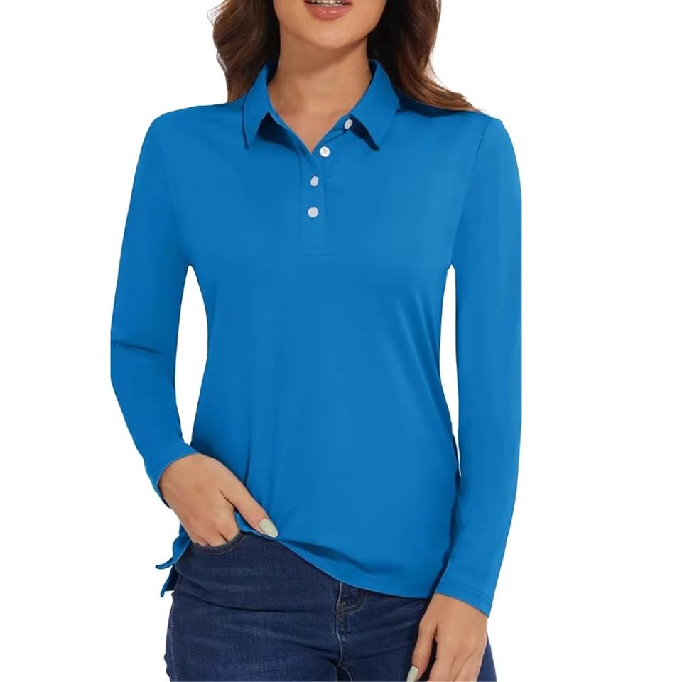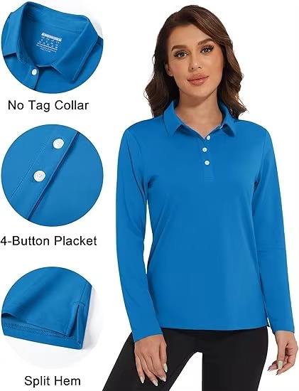 Chemise boutonnée en toile respirante anti-plis à manches longues pour femme avec logo personnalisé, idéale pour le tennis et les tenues décontractées