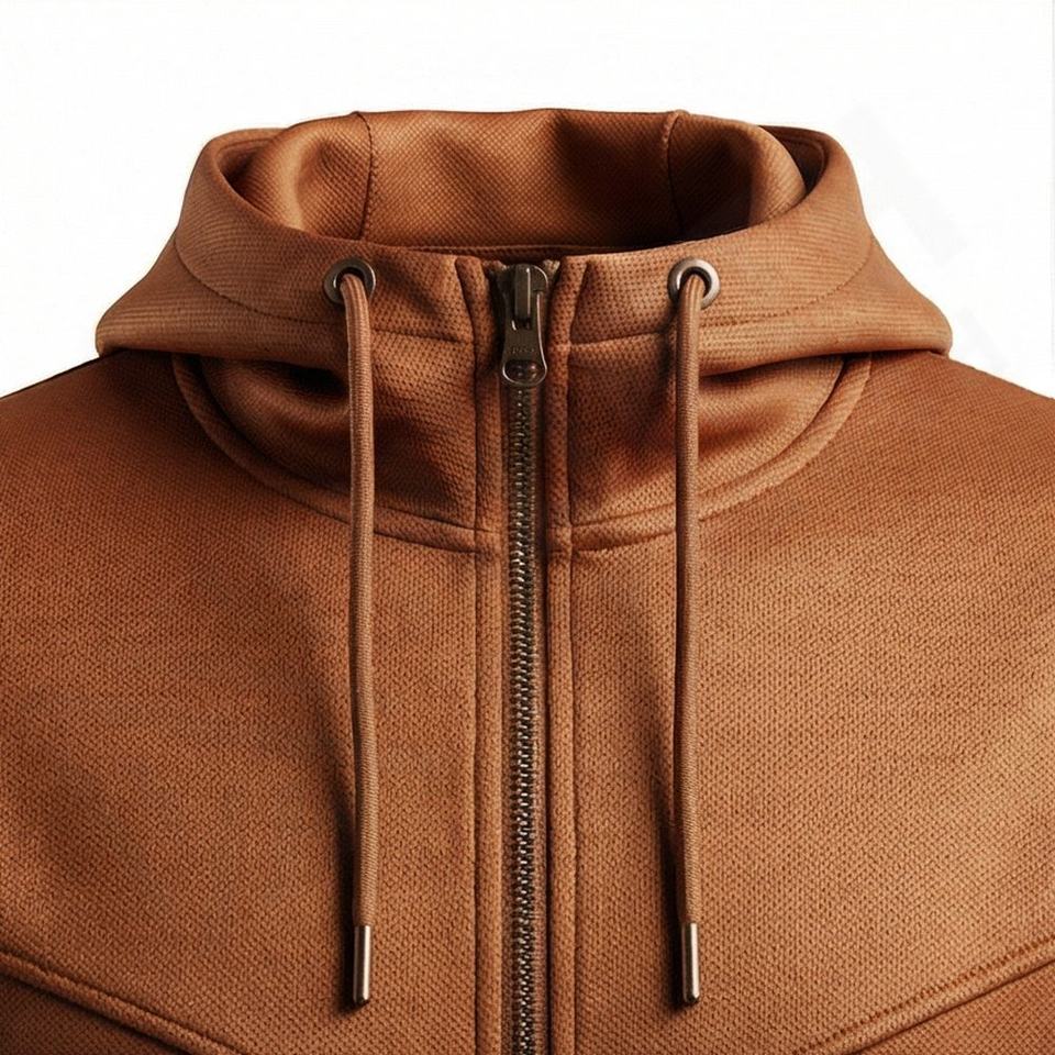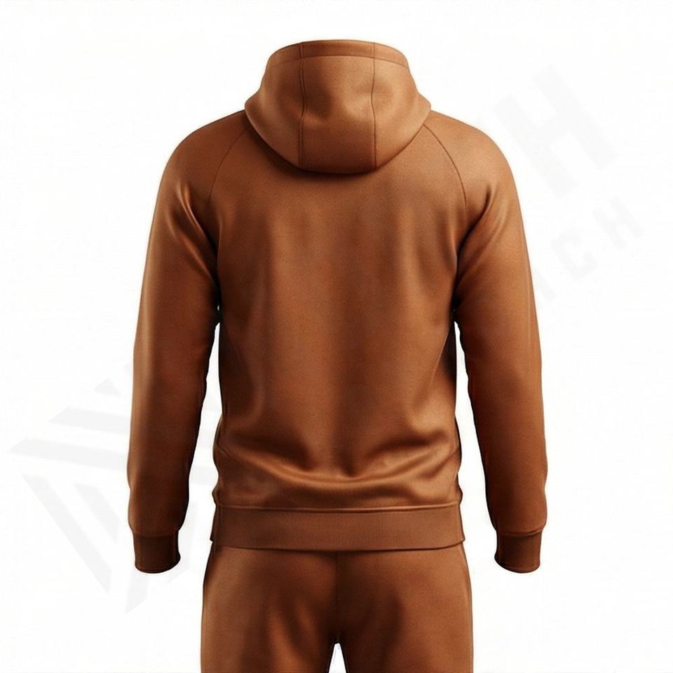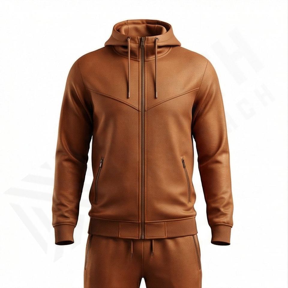 Ensemble de survêtement deux pièces en molleton technique en polyester avec logo personnalisé, sweat à capuche zippé et pantalon de jogging pour homme