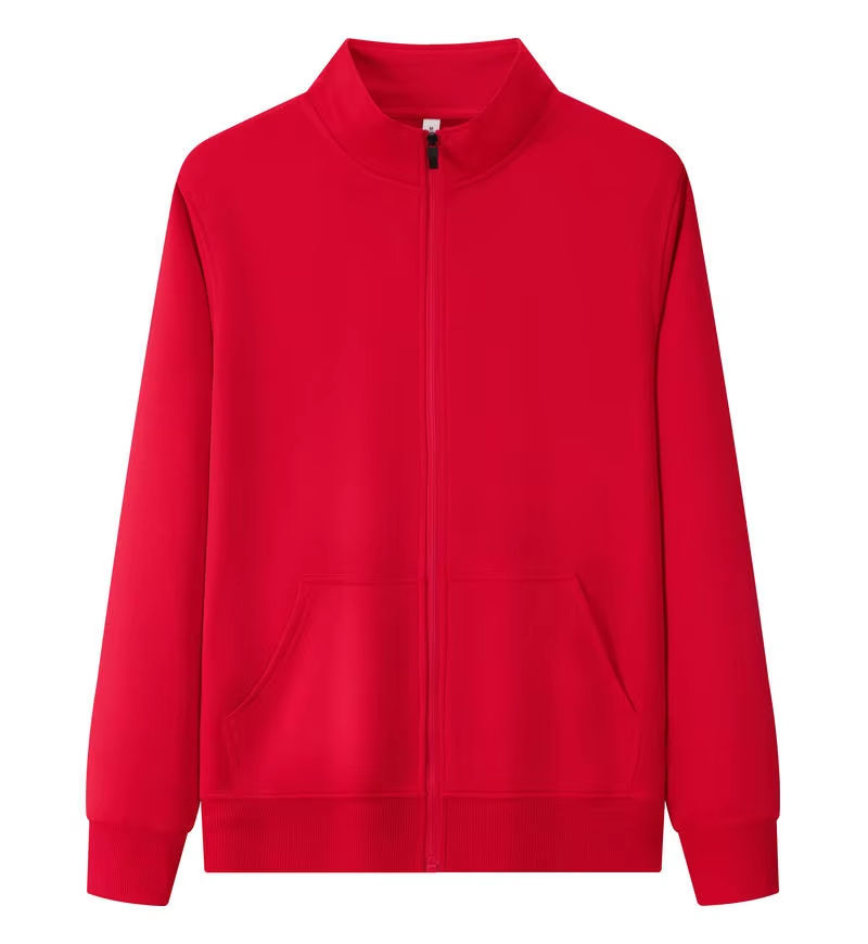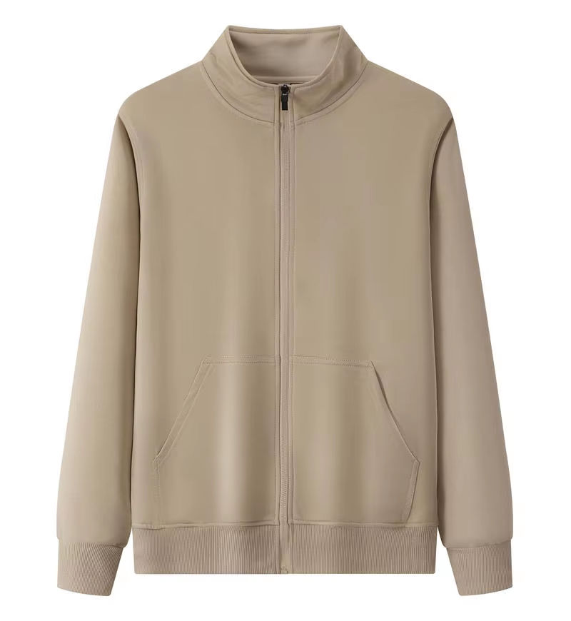 Logo personnalisé printemps automne mince style français éponge à manches longues col montant veste fermeture éclair haut cardigan travail uniforme sweats à capuche hommes