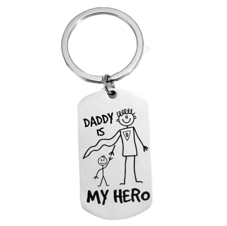 Porte-clés de forme carrée avec logo personnalisé "Mon père héros" Porte-clés personnalisé en alliage de zinc et métal imprimé