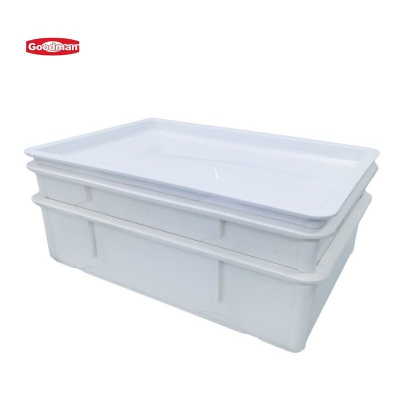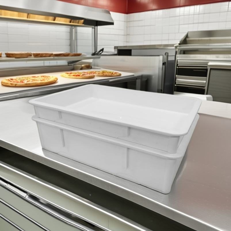 Logo personnalisé Injection Rectangle Chariot de boulangerie Empilable Boîte de stockage de pâte en plastique PP blanc étanche à l'air Plateau à pizza Épreuvage de la pâte