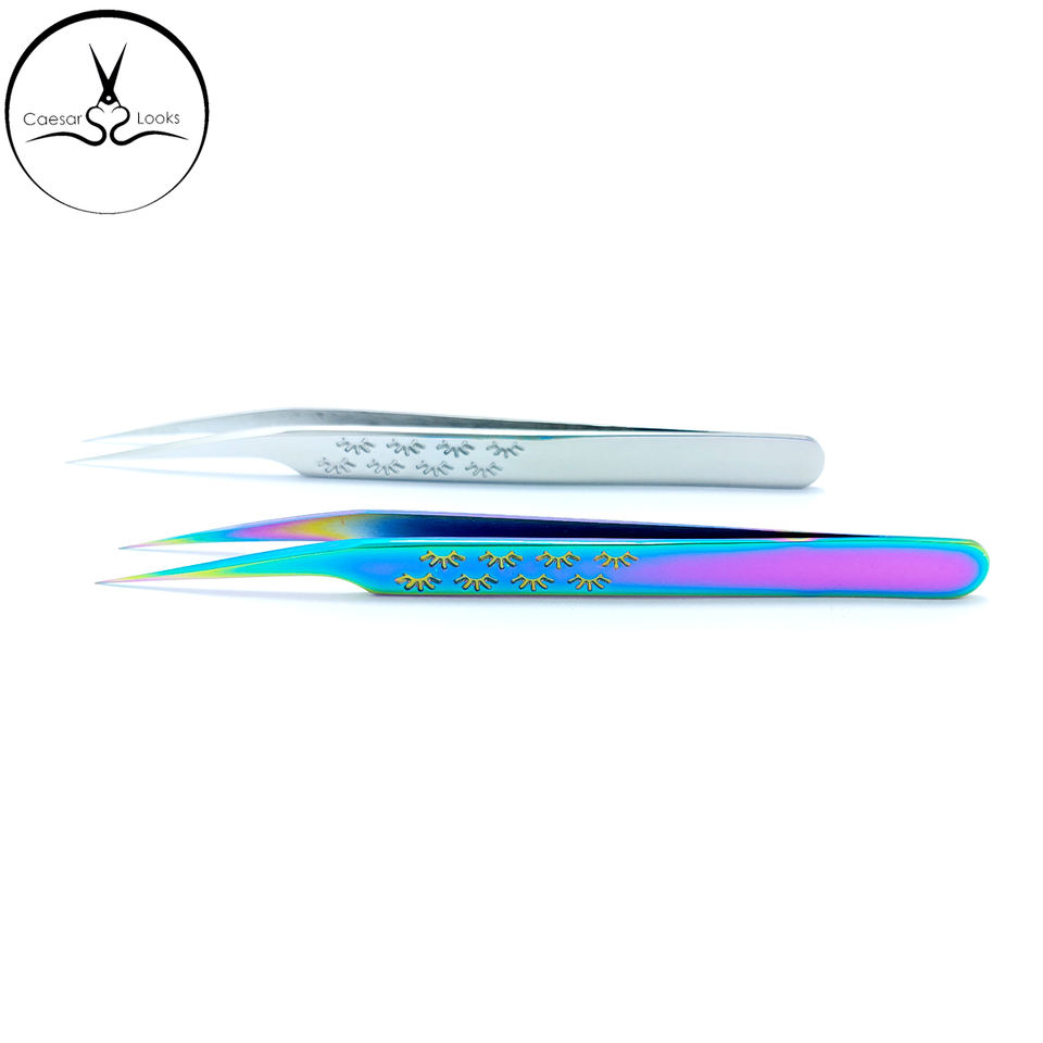 Pince à cils en acier inoxydable avec logo personnalisé avec outil d'extension pointu multicolore bleu doré pour fausse application de sourcils