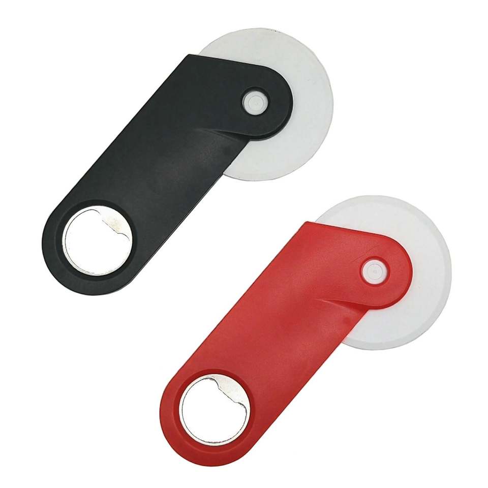Couteau à pizza en acier inoxydable avec logo personnalisé, rouleau portable, cadeau promotionnel, ouvre-bouteille, impression sérigraphique, couleur personnalisée