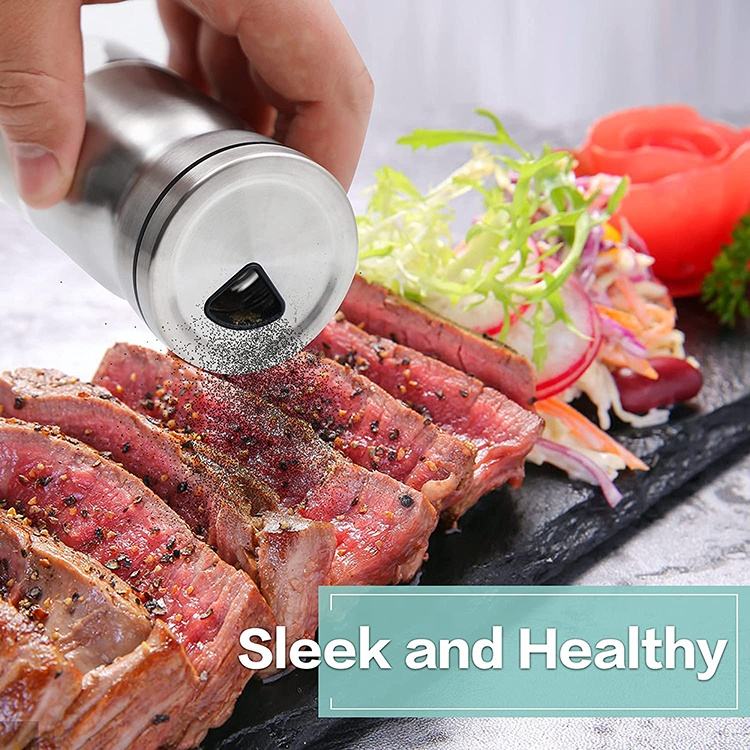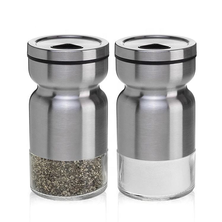 Ensemble salière et poivrière en acier inoxydable avec logo personnalisé contenant alimentaire distributeur d'épices pot pour le stockage échantillon gratuit