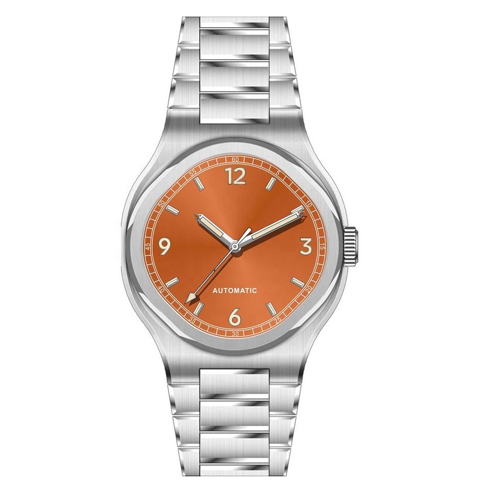 Montre pour femme en acier inoxydable avec logo personnalisé, largeur du bracelet de 24 mm, étanche, automatique, mécanique, minimaliste, grand design
