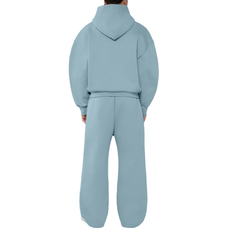 Ensemble survêtement homme oversize personnalisé avec logo, coupe décontractée, streetwear uni, sweat à capuche court zippé et pantalon de survêtement