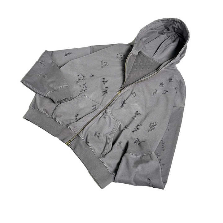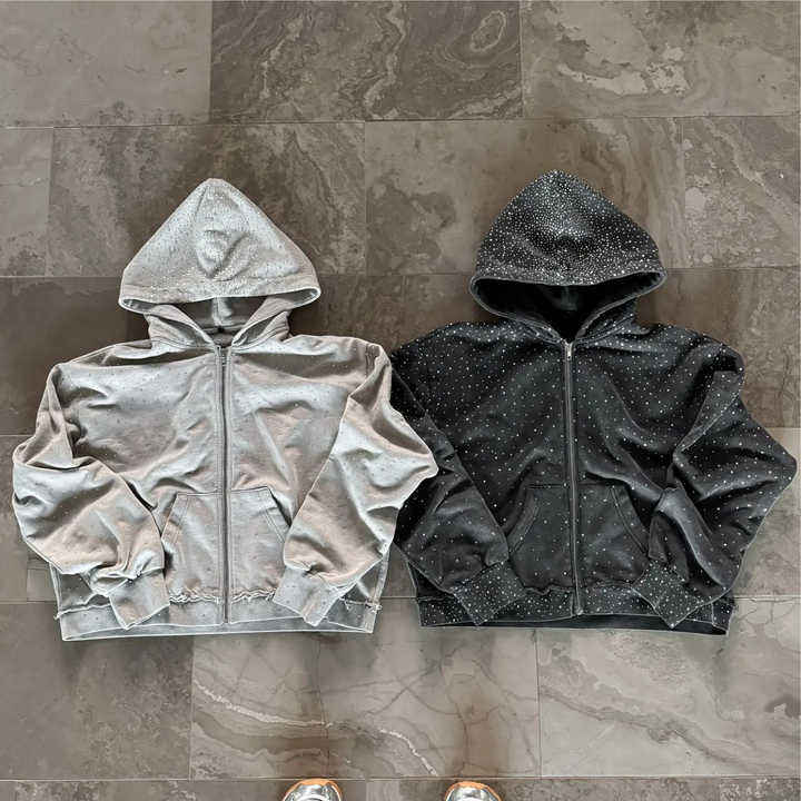 Ensemble de survêtement unisexe 2 pièces avec logo personnalisé, impression numérique, effet délavé, comprenant un sweat à capuche zippé et un pantalon de jogging, style streetwear hiver