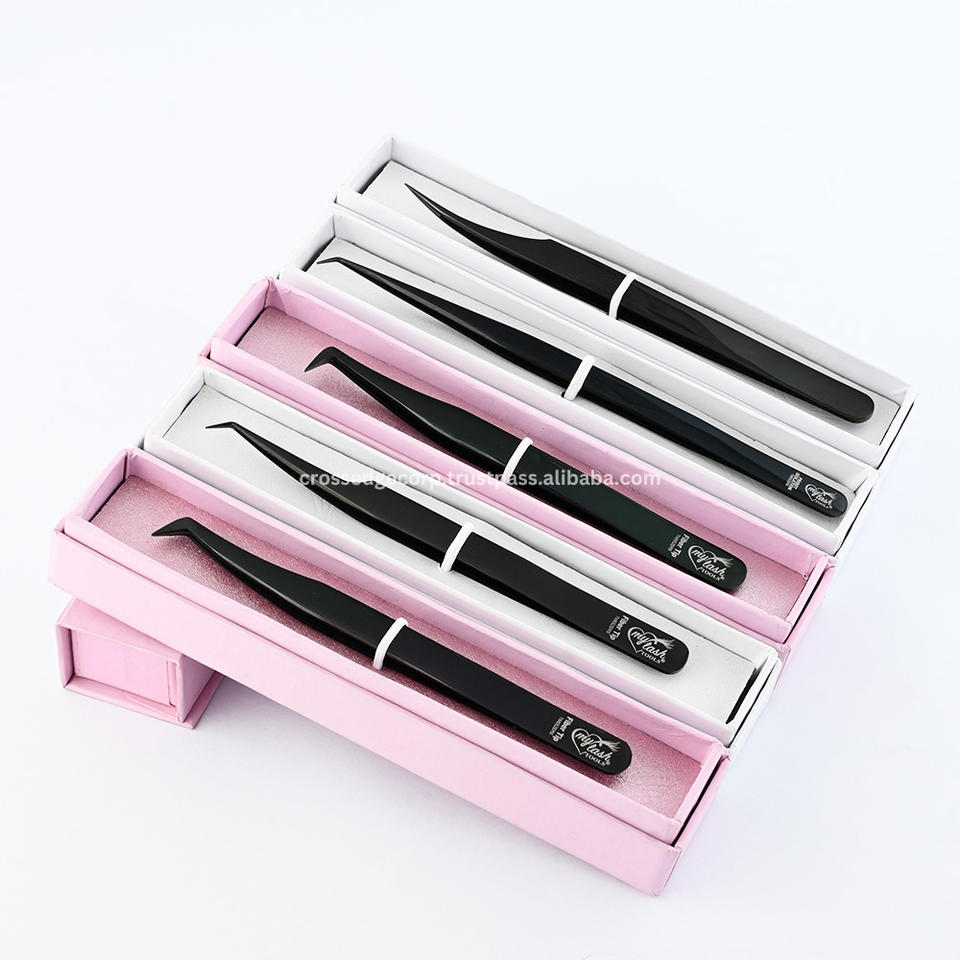 Pince à épiler pour extensions de cils à pointe en fibre avec logo personnalisé, 90 degrés, droite, volume parfait, outil d'isolation