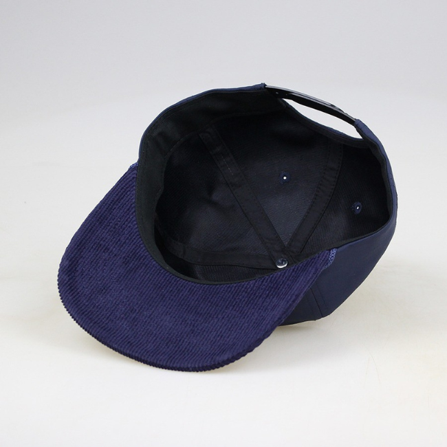 Casquettes de baseball structurées à 5 panneaux avec logo personnalisé, patch en caoutchouc, visière plate, pour usage extérieur, en coton et velours côtelé