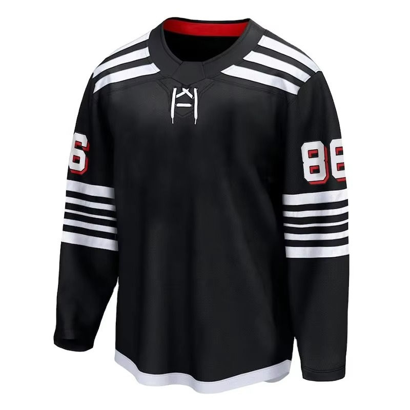 Maillot de hockey sur glace imprimé respirant, style logo personnalisé, fabricant pakistanais de qualité supérieure, coupe régulière pour adulte, 100 % polyester, sport