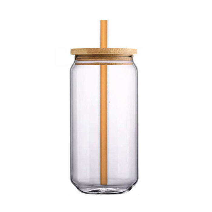 Nom du produit:Bouteille d'eau en verre avec couvercle en bambou et paille Coupe en verre de sublimation