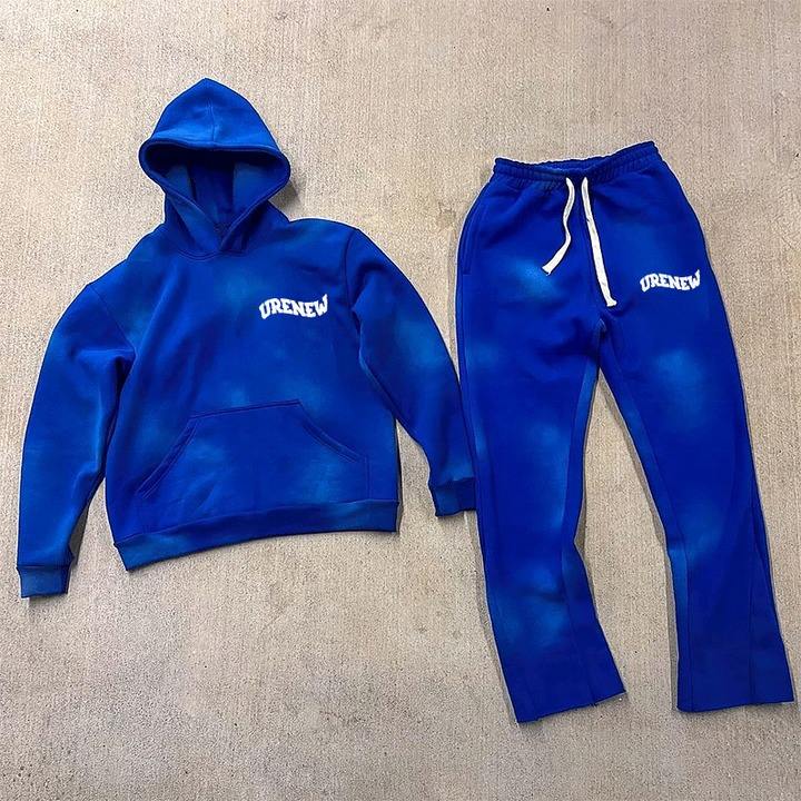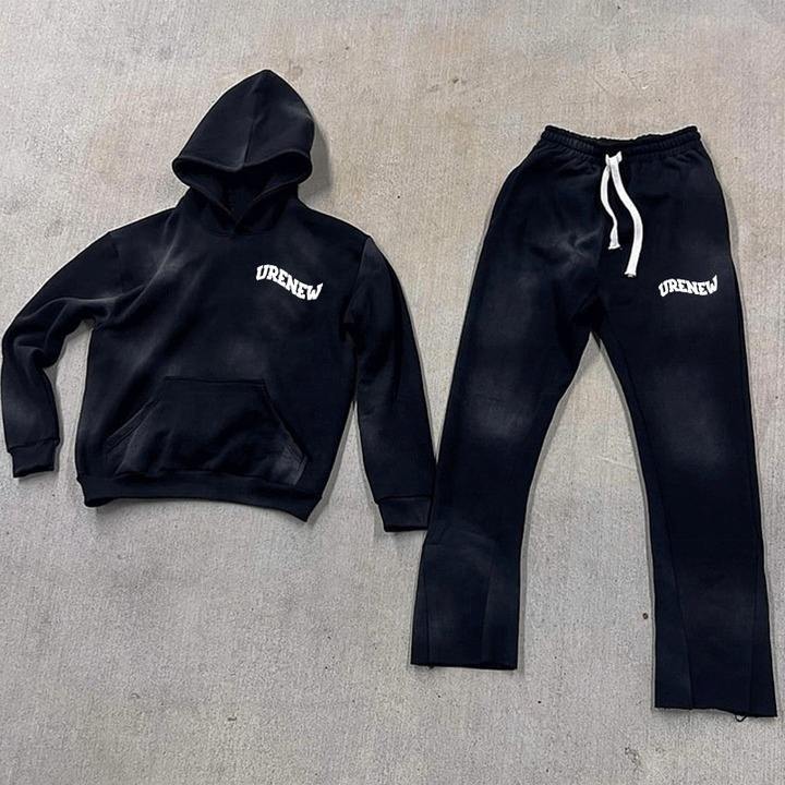 Logo personnalisé Délavé Soleil Polaire Délavée Surdimensionné Vêtements d'entraînement Survêtements Pantalon de survêtement et Sweat à capuche zippé Ensemble Survêtements pour hommes