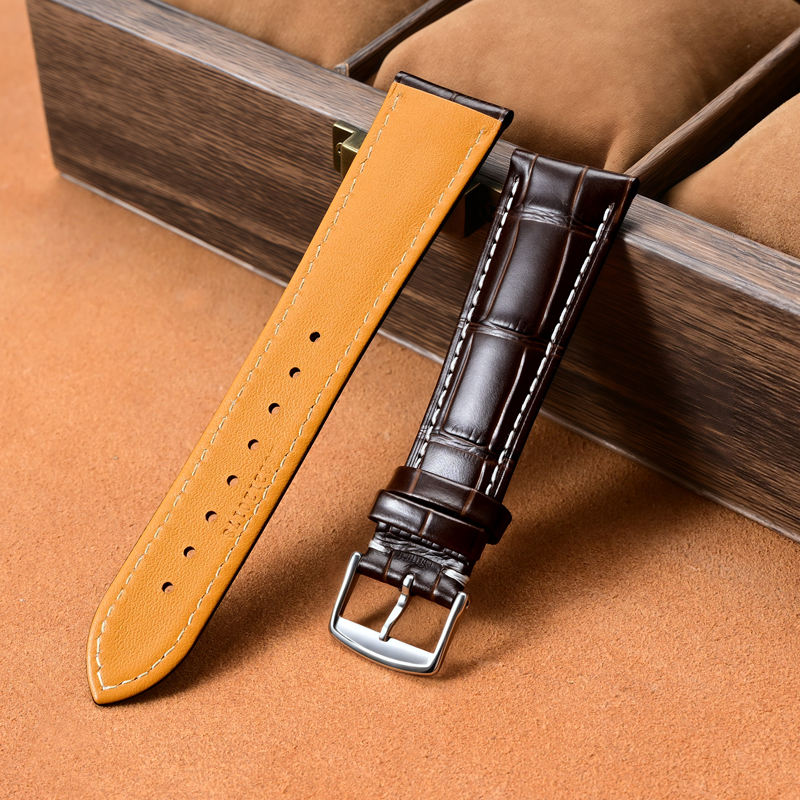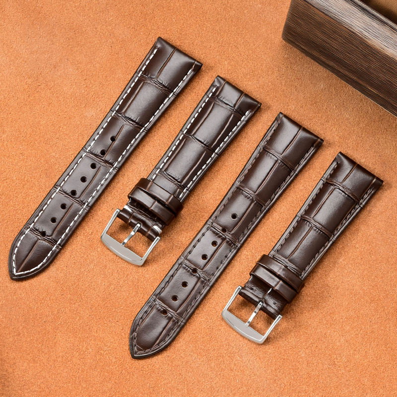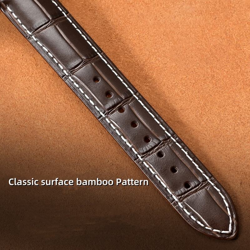 Bracelet en cuir de motif de bambou de surface de logo personnalisé pour Longine Remplacer le bracelet de montre en cuir de vache pleine fleur 14 15 20mm