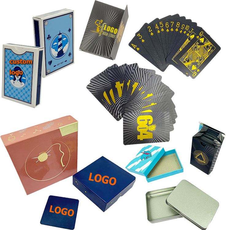 Cartes de jeu personnalisées avec logo, finition de surface, emballage, impression recto-verso, boîte incluse