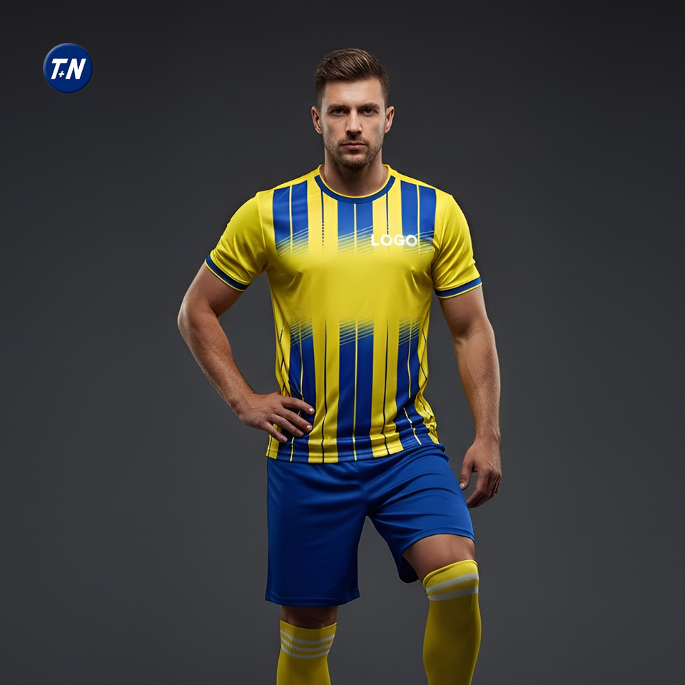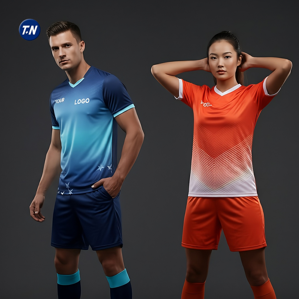 Custom Logo Team Soccer Jerseys-100% Polyester Digital Print V-Neck Short Sleeve Four-Way Stretch Breathable Fabric Front/Back