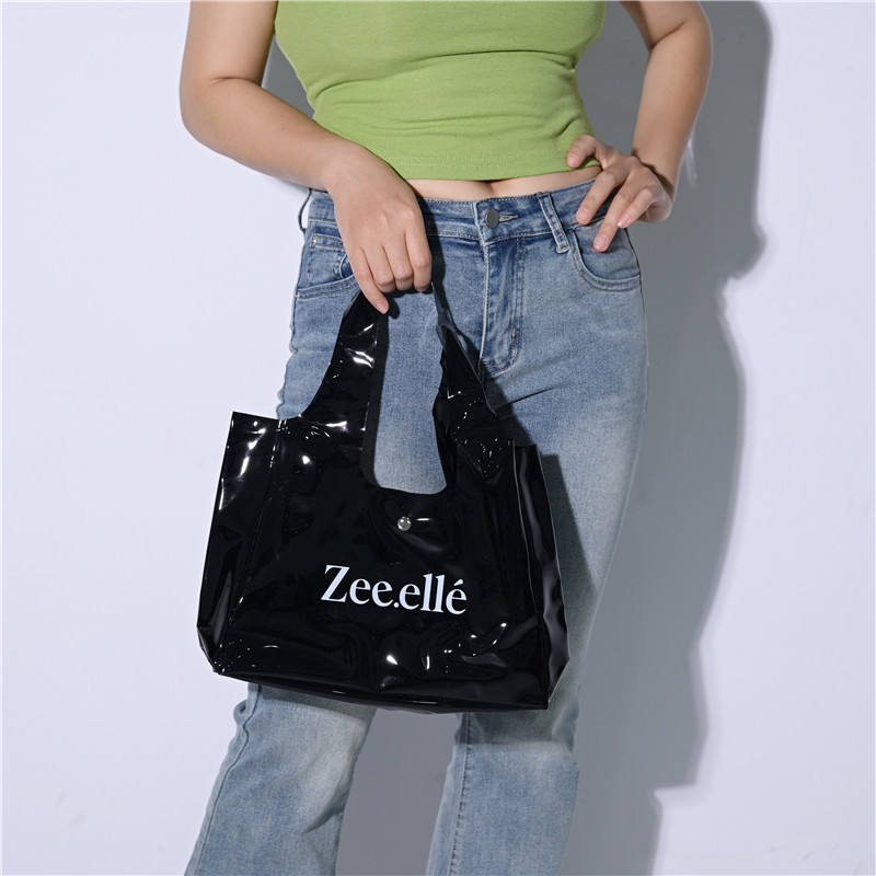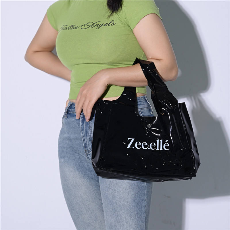 Sac fourre-tout à provisions de conception holographique laser irisé en PVC épais avec logo personnalisé avec poignée en PU à la mode et élégant