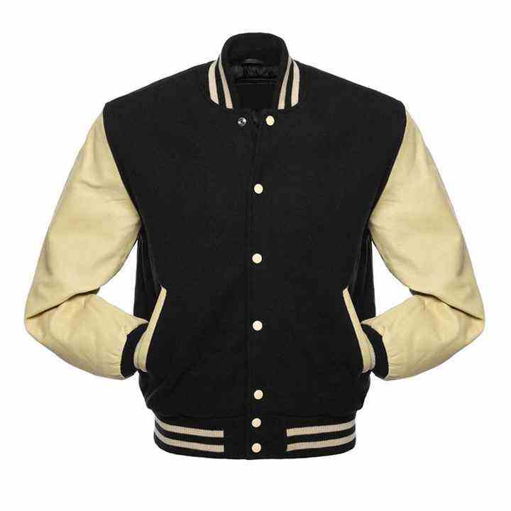 Veste universitaire en cuir fin avec logo personnalisé pour hommes, broderie de lettres de baseball, couleur noire