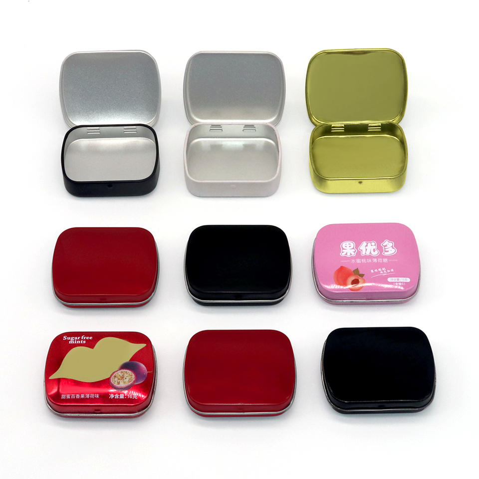 Boîte en étain personnalisée avec logo, mini boîte bon marché pour chewing-gum, cadeau, bonbons, boîte en étain à charnière pour menthes, emballage imprimé, petit sac en métal, boîte en fer blanc artisanale
