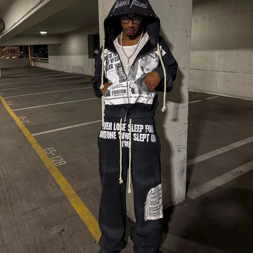Nom du produit:Ensemble de survêtement à fermeture éclair en coton lourd