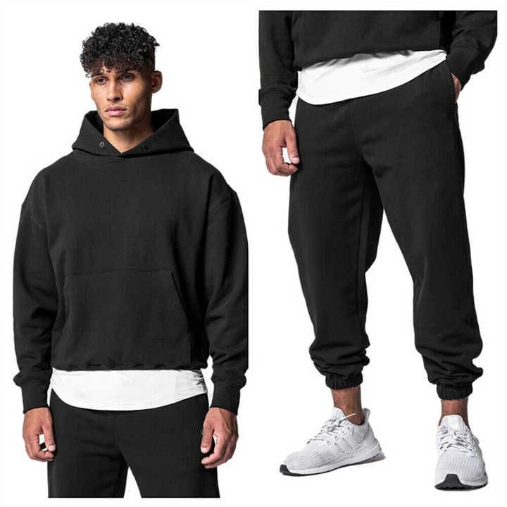 Ensemble de survêtement d'hiver pour homme avec logo personnalisé - Polyester/coton léger, deux pièces, vêtements de sport pour la salle de sport, pantalon de jogging