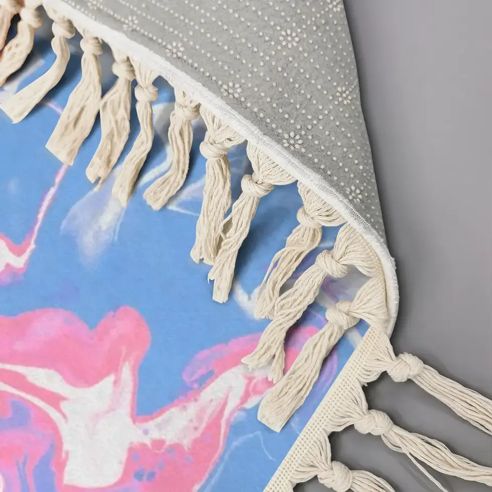 Custom Logo Traditional Nordic Style Geometric Area Rug with Tassels Foam Cut Pile Latex Backing for Bathroom Use Printed Design