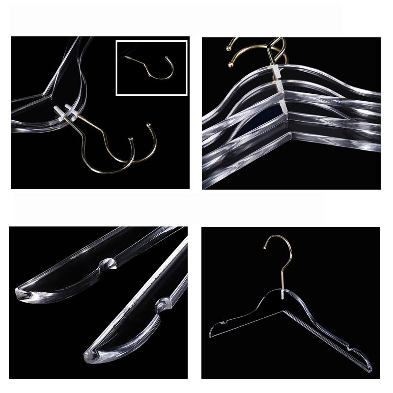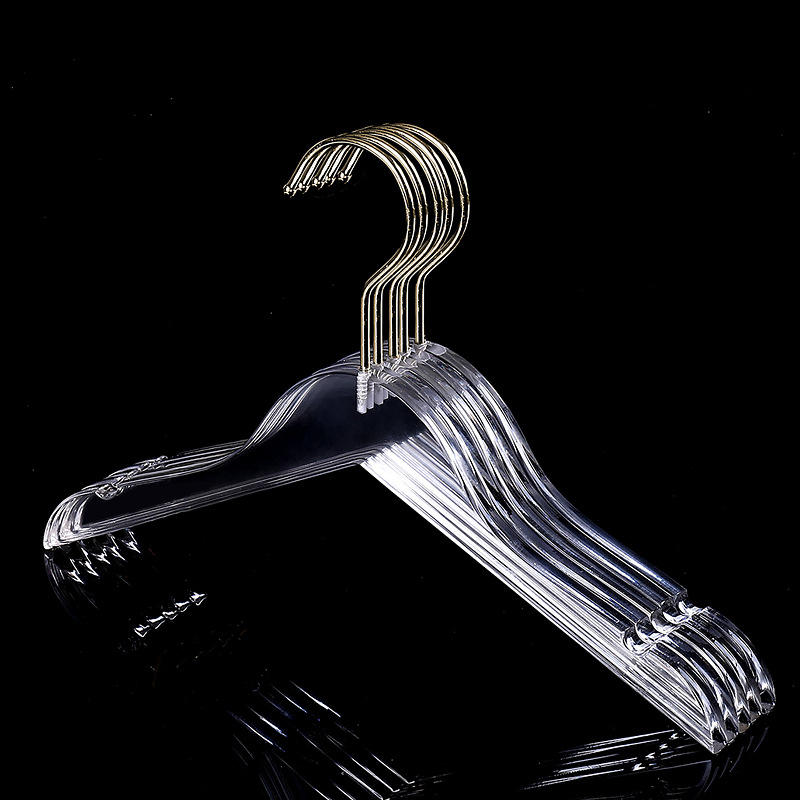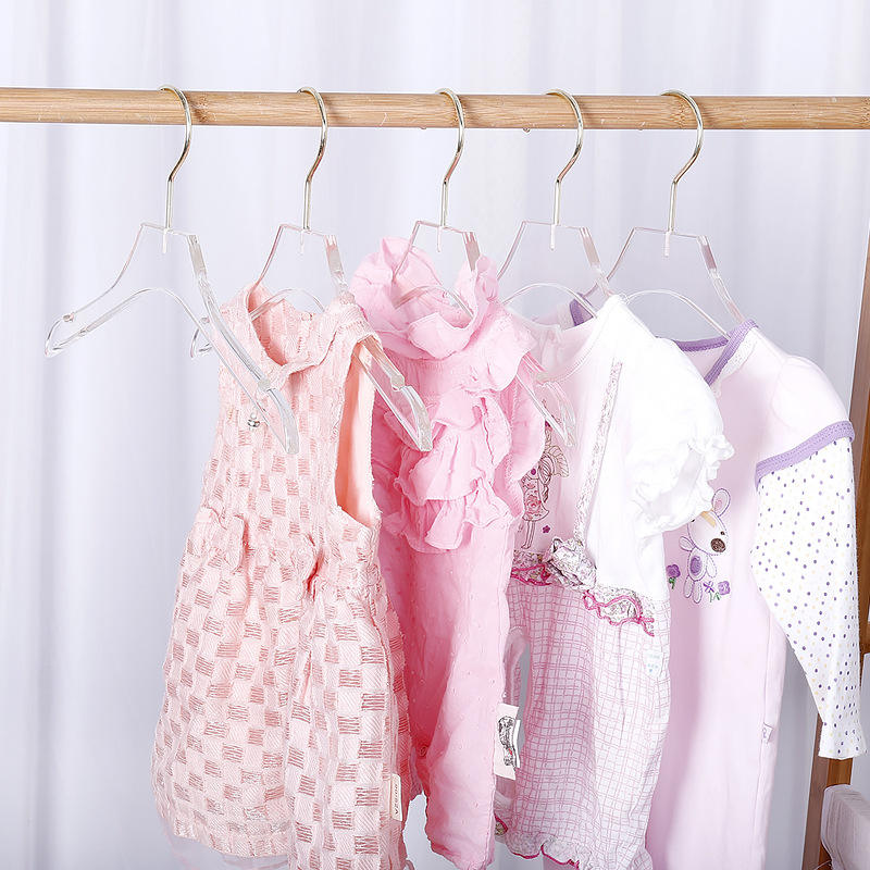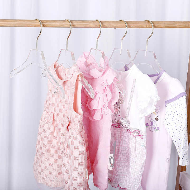 Cintre transparent avec logo personnalisé pour enfants Crochet en métal à un niveau Veste de manteau antidérapante Sacs à chaussures de salle de bain par injection
