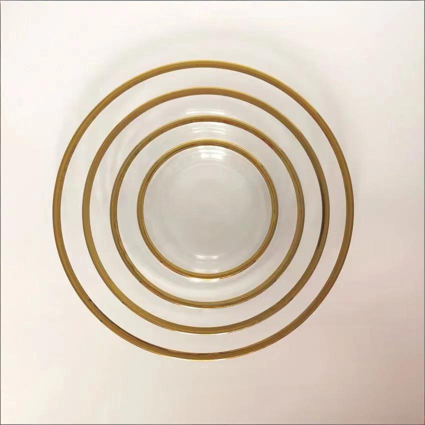 Vaisselle transparente avec logo personnalisé, bord doré, vaisselle en verre, assiettes à fruits, assiettes à steak, assiettes de table pour mariage