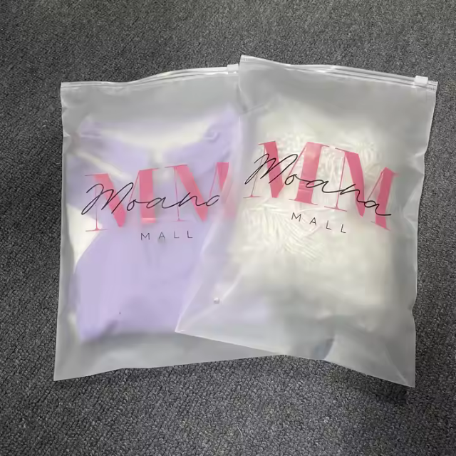 Sacs en plastique transparents zippés givrés transparents avec logo personnalisé pour vêtements et sous-vêtements d'emballage pour vêtements