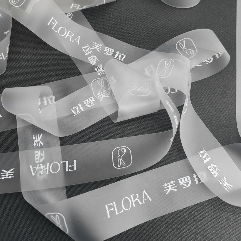 Ruban en silicone transparent avec logo personnalisé, ruban mat transparent, ruban en TPU imprimé personnalisé pour l'emballage de bouquets