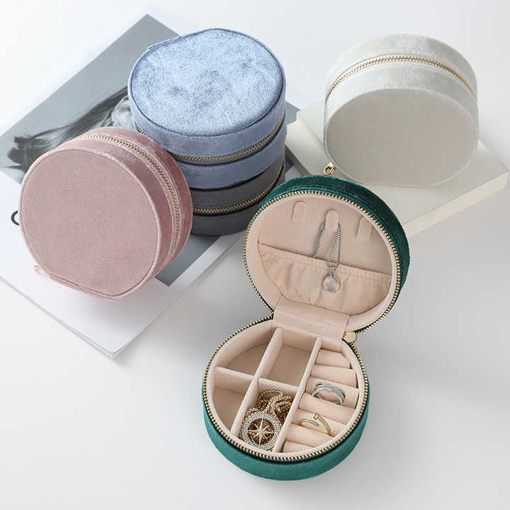 Boîte de rangement à bijoux en velours personnalisée avec logo, mini boîte à bijoux portable pour boucles d'oreilles, collier, pendentif, emballage de bijoux